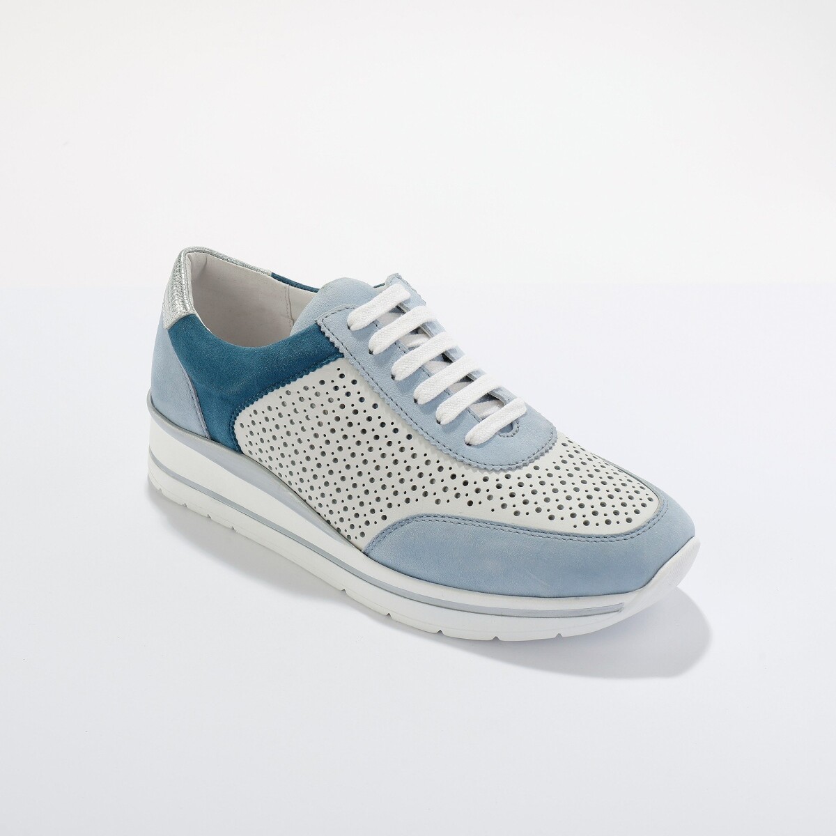 Podľahnite čaru dvojfarebných tenisiek s originálnym ažúrovým vzorom. Kombinácia hladkej kože a koženej usne. Perforovaný zvršok umožní priedušnosť chodidiel. Ploché šnúrky. Penová stielka. Klinová podrážka s kontrastnou lemovkou. Pevný opätok. Vaše topánky pravidelne ošetrujte prípravkom na ochranu pred škvrnami a vlhkosťou.